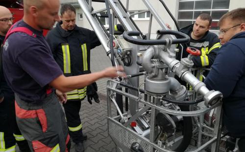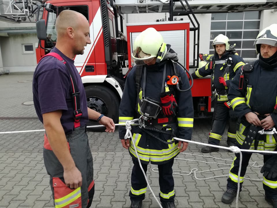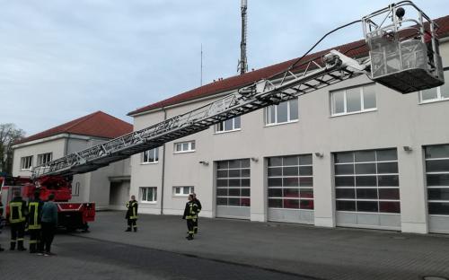 ~~Zu unseren heutigen Aktivdienst, beschäftigten wir uns mit der Ausbildung an der Drehleiter (DLK23/12) des Löschzuges 1. Vorab begannen wir mit dem richtigen einbinden zum Thema ,,Absturzsicherung“ mittels Feuerwehrleine. Fortlaufend ging es mit der Fahrzeugkunde der Drehleiter (DLK23/12) weiter. Hierbei wurde uns die Bedienung der Steuer-Einheit, Befestigung der Aufnahme-Plattform für die Rettungstrage und des Strahlrohres erklärt....